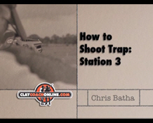 On Station 3 the clay stack (which is used as a memory aid for gun hold) is directly in front of the shooter, and aligned to the center peg. This is a 50-50 station which allows the shooter to move easily left or right. As we change positions on the course, (such as Stations 2 and 4) the angles to the targets change slightly but these Stations are shot in essentially the same fashion with only slight modification of the gun hold. COACH: Chris Batha TIME: 0:045
